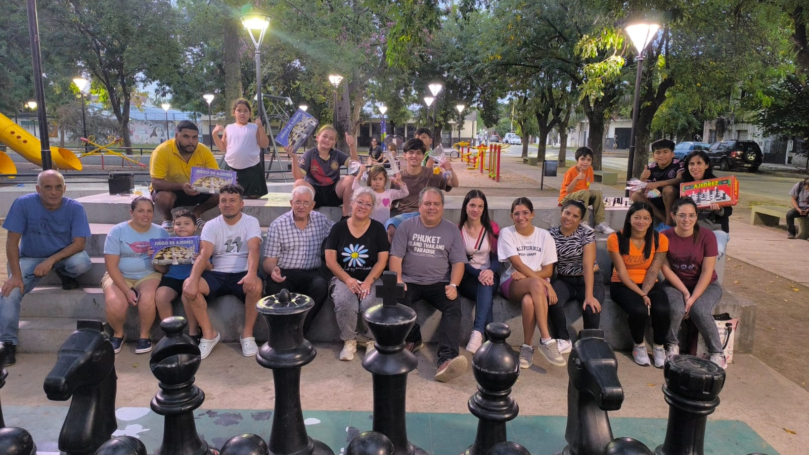 El martes 23 de diciembre, mientras afuera llovía un montón, hicimos un torneo con los chicos que vinieron a la clase de ajedrez. Participaron todos, hasta los más chiquitos. Estuvieron Dylan, Máximo, David, Daivid, Renzo, Joaquín, Eric, Camilo, Vicente y Lucia. Si bien el ganador absoluto fue Dylan, todos recibieron medallas y bolsos de recuerdo. También sorteamos un juego nuevito, que llevó David. Por supuesto, brindamos con los chicos y sus papás, con nuestros deseos de unas felices fiestas y un mejor 2026. |
